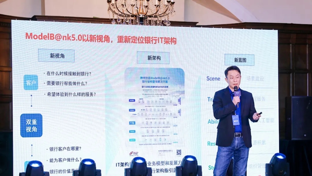 对于尊龙凯时信息全新推出的未来银行架构ModelB@nk5.0,戴可做了详细的阐述:它的五层架构,场景建设层可帮助银行建立与不同生产场景客户的链接,如生产要素的购买租赁,实现服务与客户生产经营场景的接入;旅程服务层不断优化针对各个生产场景的服务过程,并提供针对性的金融产品和服务;能力输出、资源积累、组织管理各层的建设,最终实现智能化业务处理、数据积累分析,帮助银行持续提升风险防范,持续挖掘数据要素价值,推动创新金融服务,优化自身数字化经营能力。