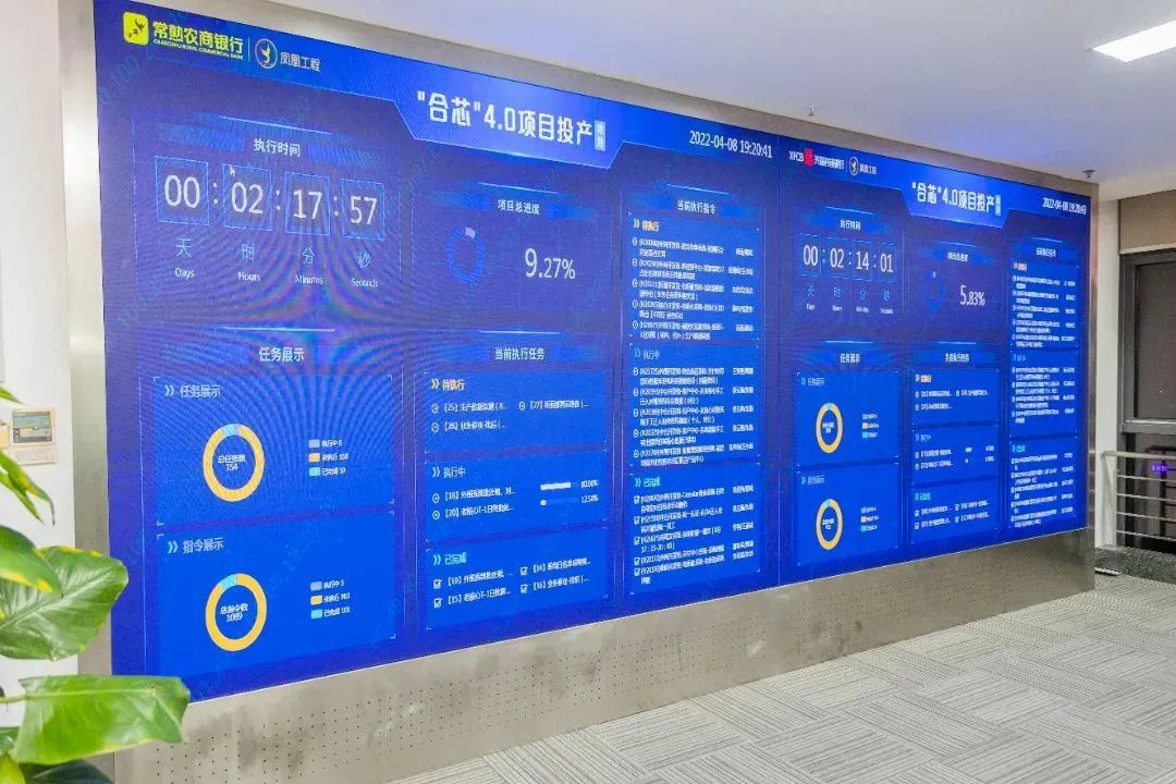 为确保“合芯”4.0项目高质量上线,行领导坐镇指挥中心,各大友商齐心协力,项目组全体成员通宵鏖战、各分支机构和村镇银行员工日夜坚守,历经上线前准备、业务停服、数据迁移核验、系统升级部署、业务绿灯验证、试营业等环节。
