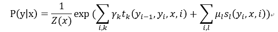 转移特征函数,与结点的上下文相关,即与节点 i 和节点 i - 1 都有关系,是定义在 i上下文的局部特征函数。