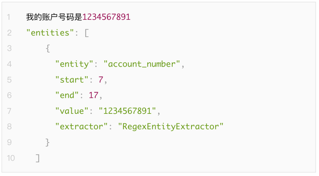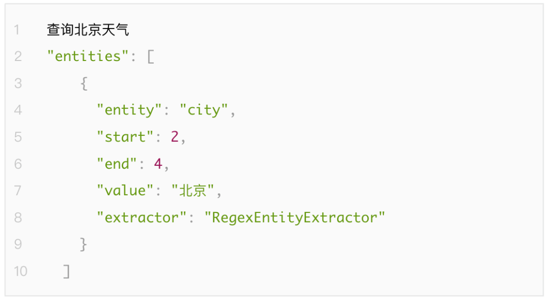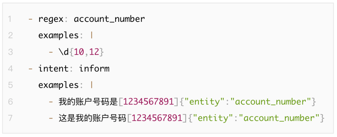 此组件只使用实体名称等于训练数据中定义的实体之一的正则表达式的pattern,所以训练数据中,要确保每个实体至少注释一个示例。