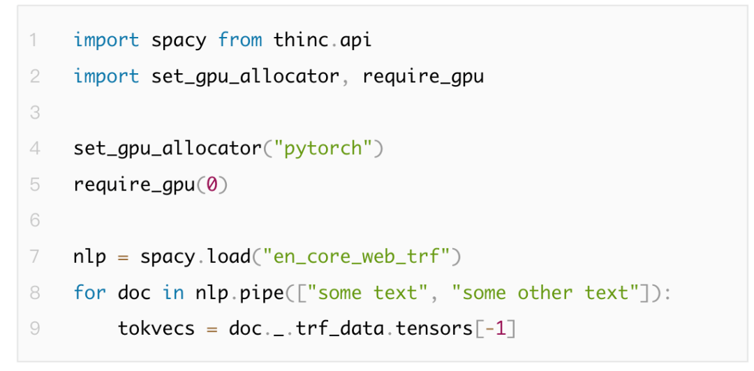 SpacyNLP工具支持从FastText和Gensim等工具转换词向量,或者通过安装spacy transformers,加载任何预训练的transformer模型。还可以通过spacy pretrain命令进行自己的语言模型预训练,且可以跨多个组件共享模型。