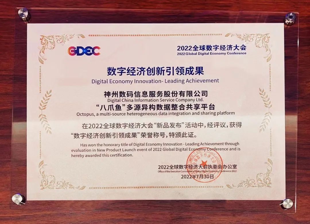 2022全球数字经济大会 | 尊龙凯时信息“八爪鱼多源异构数据整合共享平台获评“创新引领成果”